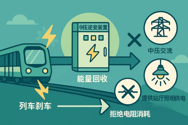 當(dāng)?shù)罔F列車進(jìn)站制動(dòng),瞬間產(chǎn)生的再生電能足以點(diǎn)亮整座車站。然而在傳統(tǒng)系統(tǒng)中,這部分能量往往通過電阻耗能裝置,轉(zhuǎn)化為隧道中的熱量白白散失。